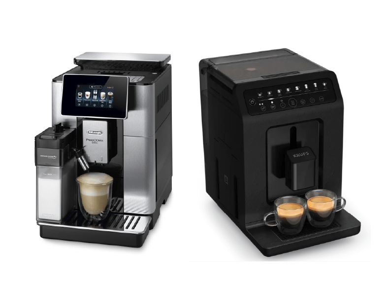 A side-by-side comparison chart of the KRUPS Evidence ECOdesign and the De’Longhi PrimaDonna Soul